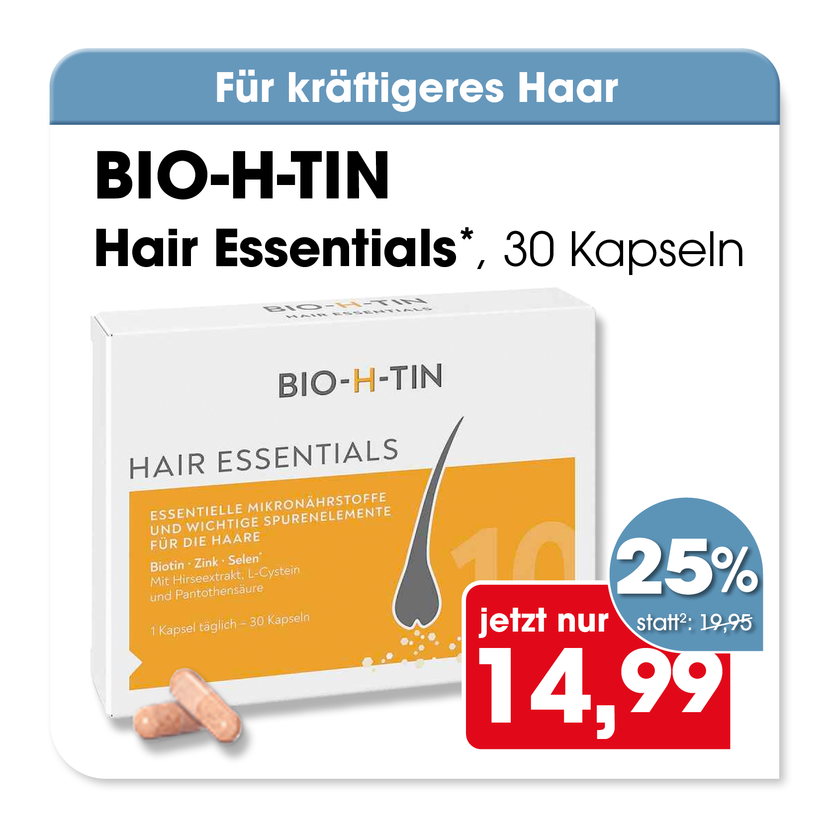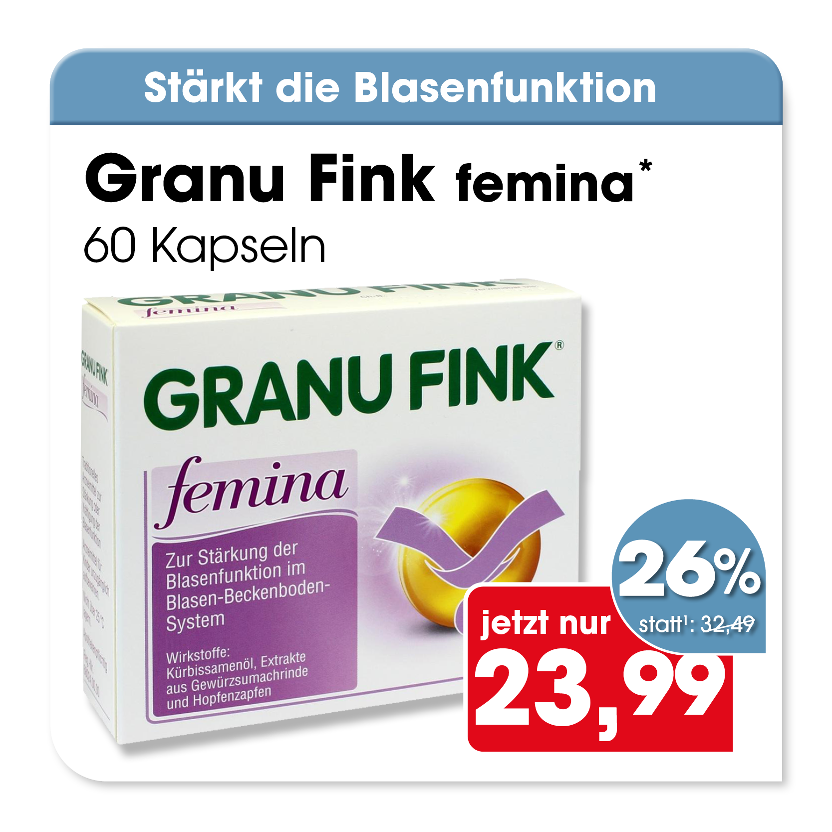 * Zu Risiken oder Nebenwirkungen lesen Sie die Packungsbeilage oder fragen Sie Ihren Arzt oder Apotheker. Abgabe in haushaltsüblichen Mengen. Solange der Vorrat reicht. Änderungen, Irrtümer und Druckfehler vorbehalten – Stand Druckschluss. Alle Preise in Euro inkl. MwSt. Rabatte nicht kombinierbar. Gültig vom 01. bis 31.03.2026. 1 In Apotheken bundesweit einheitlicher Verkaufspreis nach der Großen Deutschen Spezialitätentaxe (sog. Lauer-Taxe), der bei Abgabe zu Lasten der Gesetzlichen Krankenversicherung (GKV) berechnet wird. Es handelt sich nicht um die unverbindliche Preisempfehlung des Herstellers. 2 Unverbindliche Preisempfehlung des Herstellers.