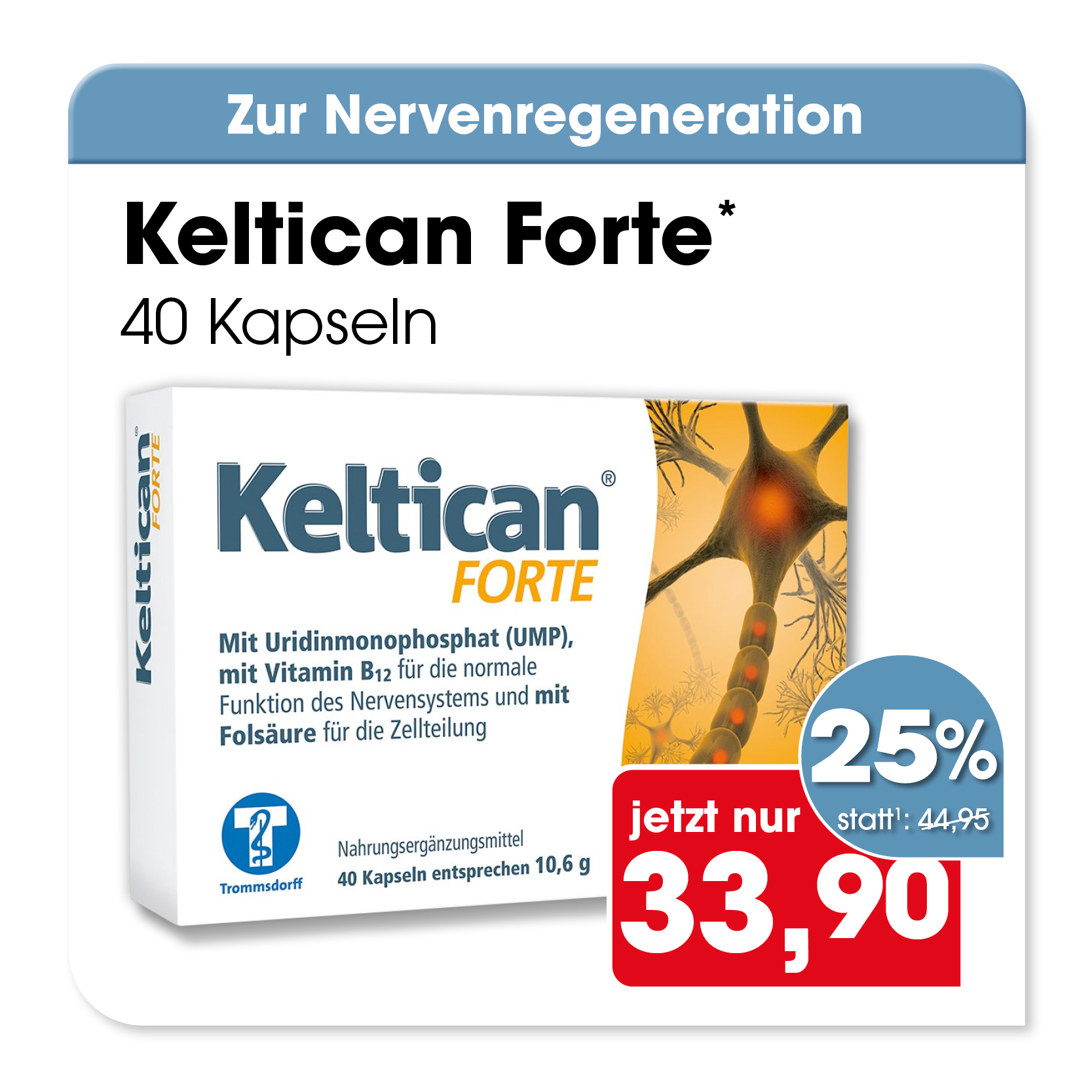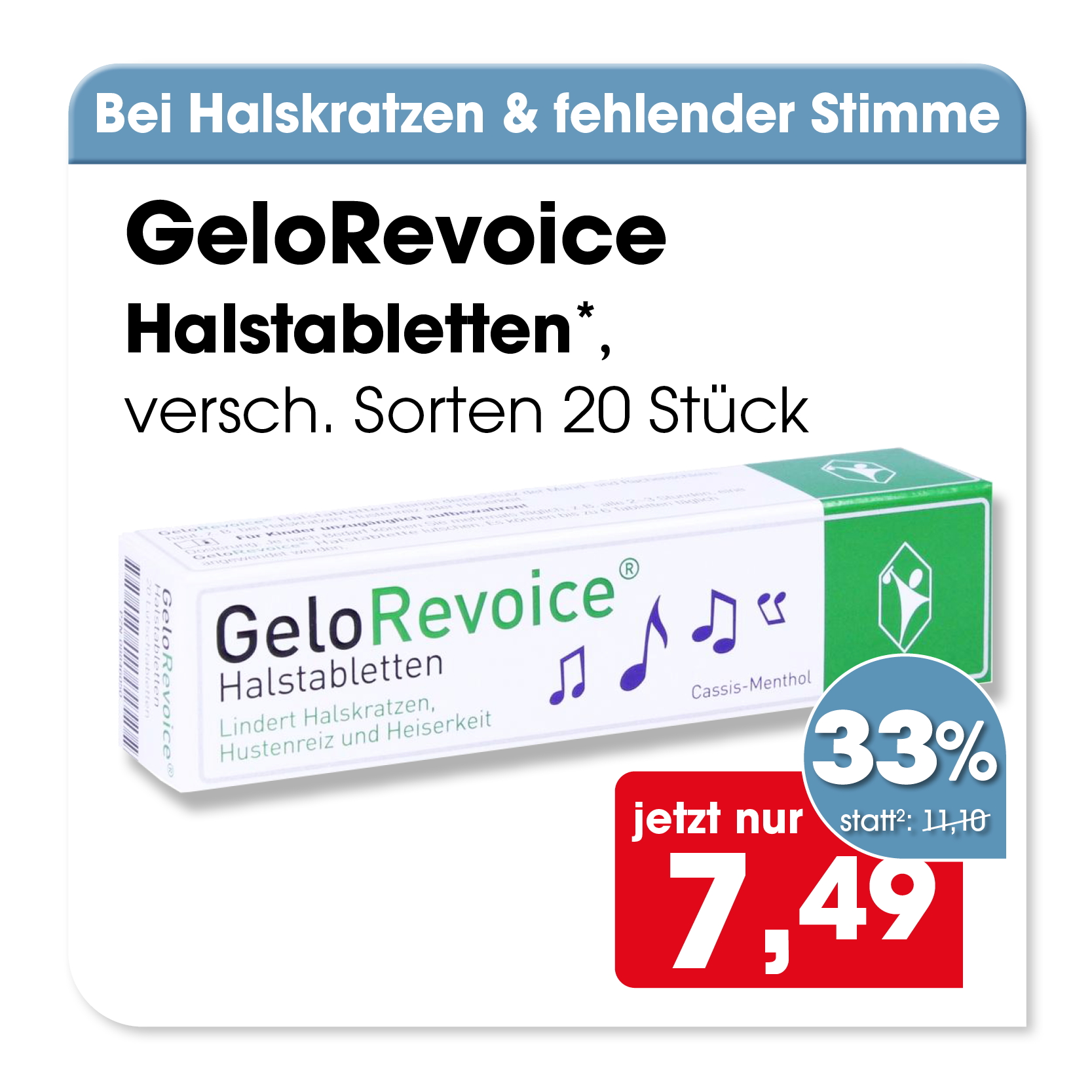 * Zu Risiken oder Nebenwirkungen lesen Sie die Packungsbeilage oder fragen Sie Ihren Arzt oder Apotheker. Abgabe in haushaltsüblichen Mengen. Solange der Vorrat reicht. Änderungen, Irrtümer und Druckfehler vorbehalten – Stand Druckschluss. Alle Preise in Euro inkl. MwSt. Rabatte nicht kombinierbar. Gültig vom 01. bis 31.03.2026. 1 In Apotheken bundesweit einheitlicher Verkaufspreis nach der Großen Deutschen Spezialitätentaxe (sog. Lauer-Taxe), der bei Abgabe zu Lasten der Gesetzlichen Krankenversicherung (GKV) berechnet wird. Es handelt sich nicht um die unverbindliche Preisempfehlung des Herstellers. 2 Unverbindliche Preisempfehlung des Herstellers.